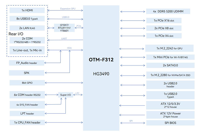 I/O: 8x USB3.1, 3x USB2.0, 8bit GPIO, 1x LPC, 1x RS232/485, 7x RS232